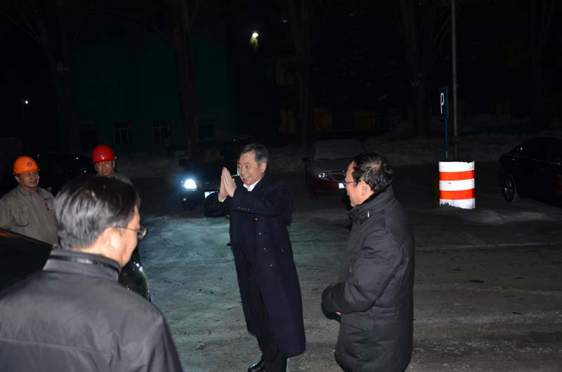 踏著濃濃的夜色,經(jīng)過近一個小時的現(xiàn)場踏察和指導,劉市長一行拱手送上對全體熱電員工的新年祝福,近21時才告辭返程。