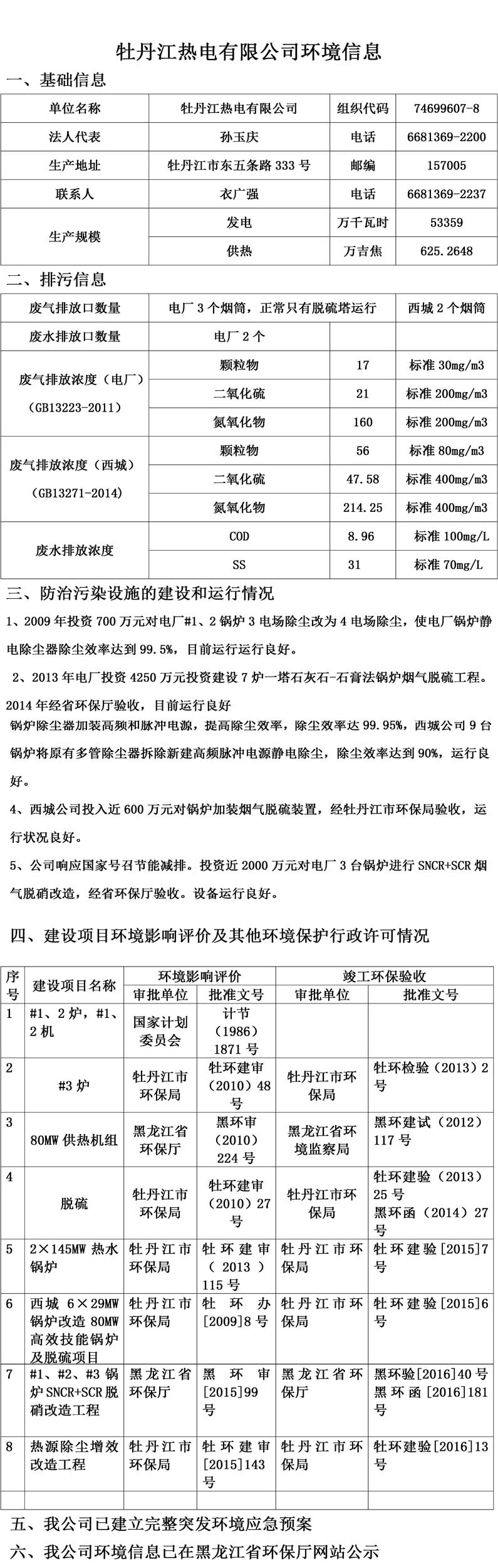牡丹江熱電有限公司環(huán)境信息